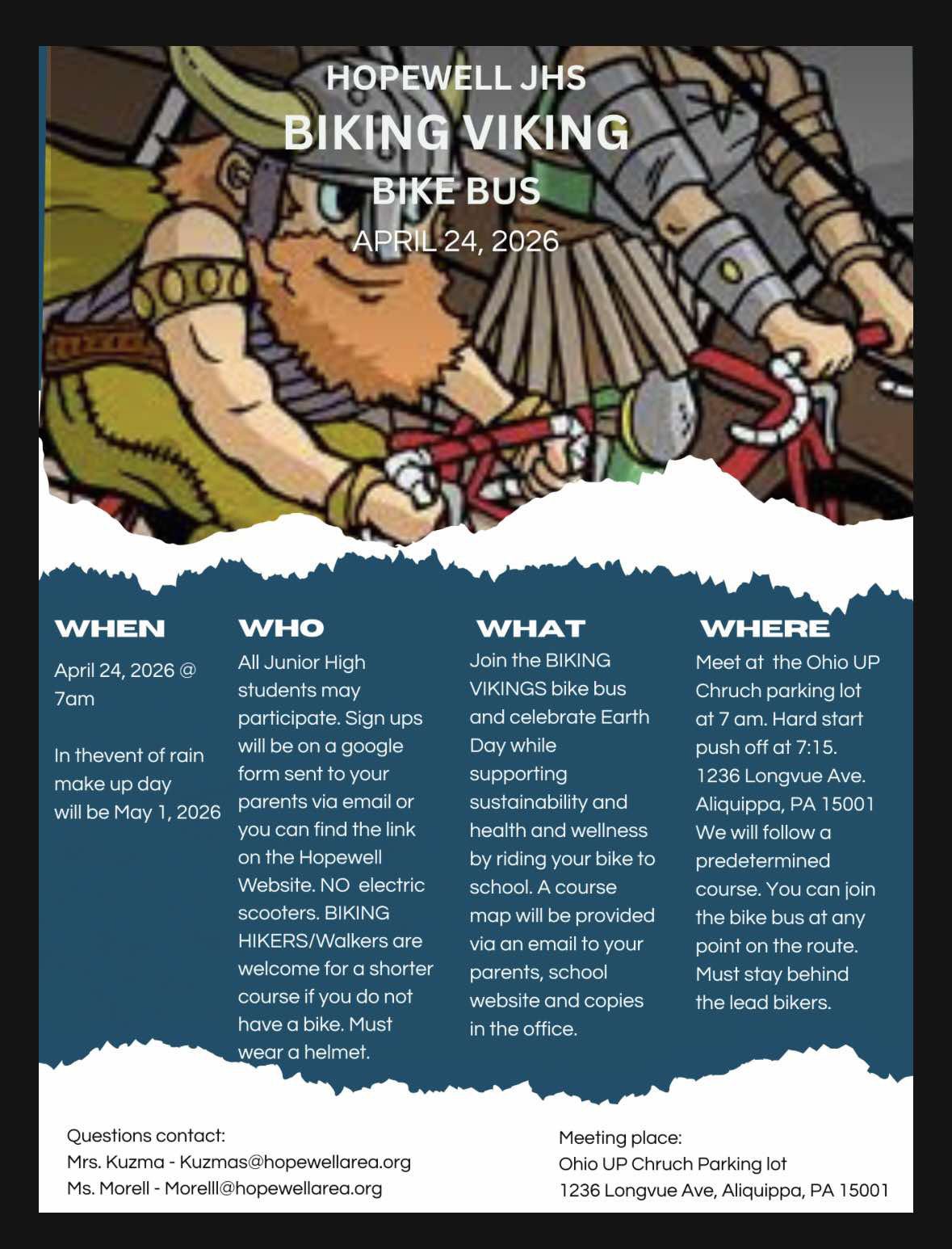 Hopewell Junior High is gearing up for something truly special—and the energy around it is already building. The first-ever “Biking Vikings” Bike Bus is set to roll on Friday, April 24, 2026, and it’s shaping up to be an unforgettable morning for students and the community alike.